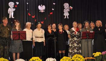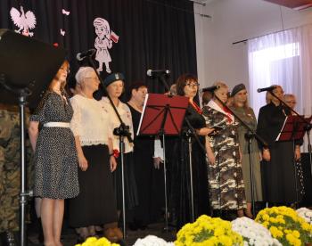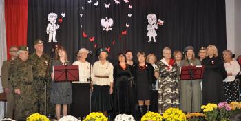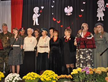 „Porębianie” zachwycili zgromadzonych pięknie przygotowanym programem artystycznym w którym pieśni patriotyczne przeplatały się z wątkami historycznymi. Najlepszym komentarzem do scenicznych prezentacji były długie i rzęsiste brawa po każdym z utworów.