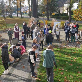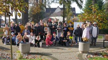 W ramach projektu uczniowie sadzą jesienią cebulki żółtych krokusów, które zakwitają wczesną wiosną, symbolizując pamięć o najmłodszych ofiarach wojny. Podczas dzisiejszego spotkania dzieci z wielkim zaangażowaniem posadziły 50 cebulek krokusów w przygotowanych miejscach przy fontannie w Grojcu.
