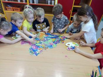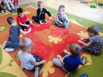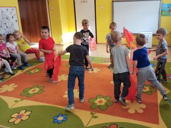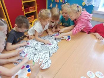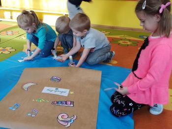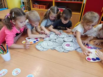 30 listopada rozpoczęliśmy realizację drugiego modułu projektu edukacyjnego „Emocja” – Kraina Wyobraźni. Podczas zabaw i zajęć dzieci zainspirowane muzyką i literaturą próbowały odpowiedzieć, czym jest dla nich wyobraźnia, jak ją zdefiniować, opisać. Wspólnie wykonały ilustrację do wiersza Natalii Martenki „Nasza wyobraźnia”, zaprezentowały Taniec Wyobraźni do fragmentów utworów „Messages” – Vangelis, Blackomors Night „Magical World”, a na zakończenie zajęć malowały drzewko wyobraźni, na którym zawisły rysunki przedstawiające marzenia przedszkolaków.